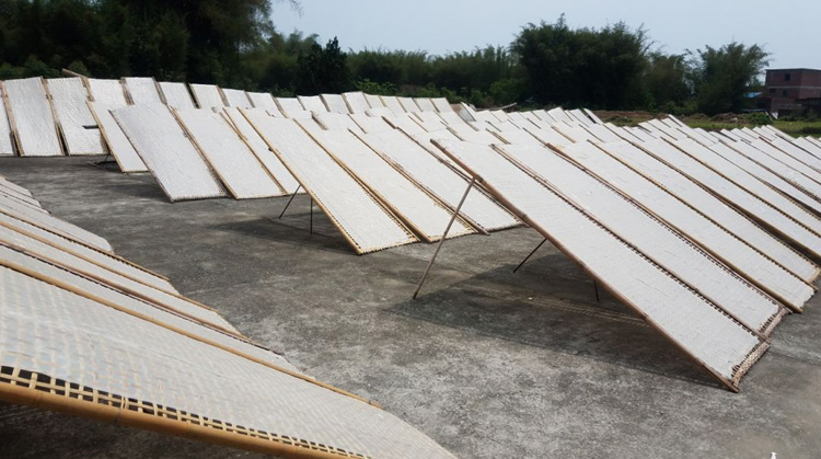 岗坪切粉需经过浸米、清洗、磨浆、蒸粉、出粉、晾晒、刷油水、打折、切丝,再晒干、包扎等10多项工序加工而成。